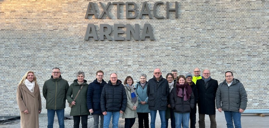 Nun wurden die zehn Gewinnerinnen und Gewinner des Wettbewerbs ermittelt und in die neue Multihalle eingeladen, um mit Bürgermeisterin Karin Rodeheger den Schriftzug der Axtbach-Arena offiziell zu beleuchten. Im Rahmen einer kleinen Feierstunde führte Projektleiter Thomas Eifler alle Teilnehmenden auf einem exklusiven Rundgang durch die Halle.