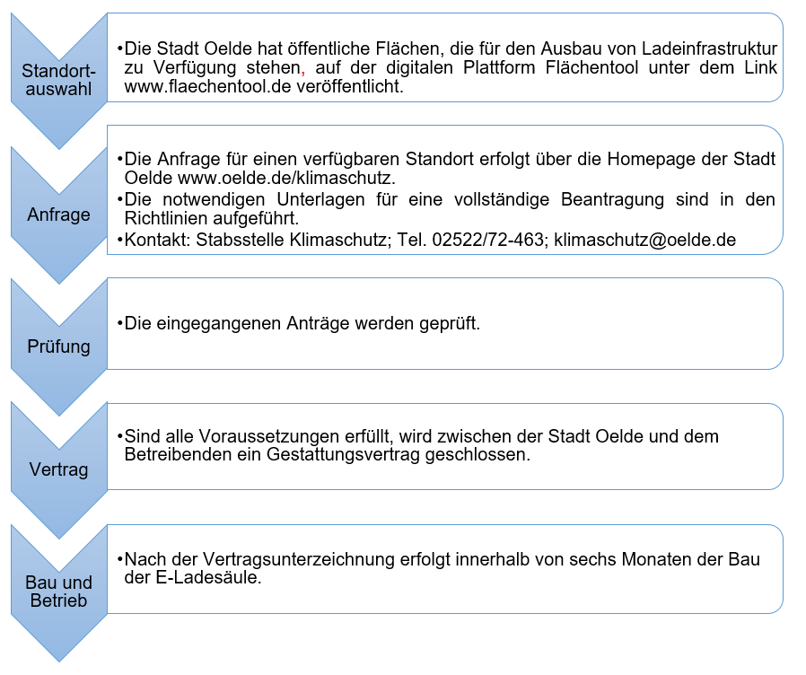 Die Stadt Oelde befürwortet einen bedarfsgerechten und nutzerfreundlichen Ausbau der Ladeinfrastruktur für Elektrofahrzeuge in ihrem Stadtgebiet, mit dem Ziel, die Schadstoff-, Lärm- und Treibhausgasemissionen aus dem Sektor Verkehr nachhaltig zu verringern.