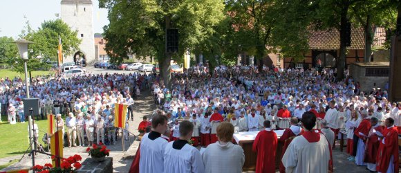 Die Wallfahrtszeit wird am ersten Sonntag wie seit Jahrhunderten mit der Kreuztracht eröffnet. Die Prozession zieht mit dem Heiligen Kreuz früh vom Burgplatz auf den rund 10 km langen Kreuzweg. Gemeinsam mit allen Pilgern des Tagen wird am Vormittag das Pilgerhochamt auf den Stufen vor der Wallfahrtskirche gefeiert.