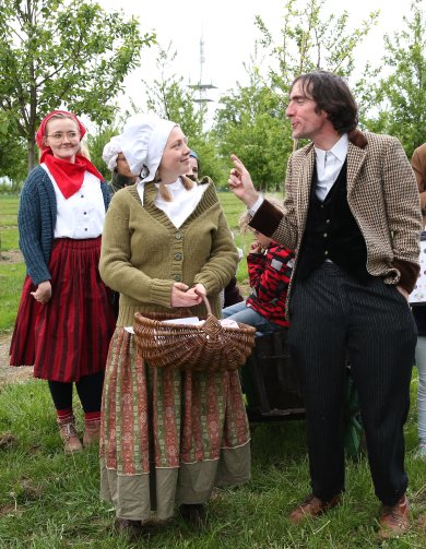 Herbeispaziert und mitgemacht bei einem echten Parforceritt durch 1132 Jahre Oelder Geschichte. Historische Persönlichkeiten wie Bauern, Könige, Schankwirt*innen und Nonnen erzählen vom Ulithi im Dreingau, über Königsbesuch, Ausbau der Bahnstrecke bis zur Landesgartenschau.