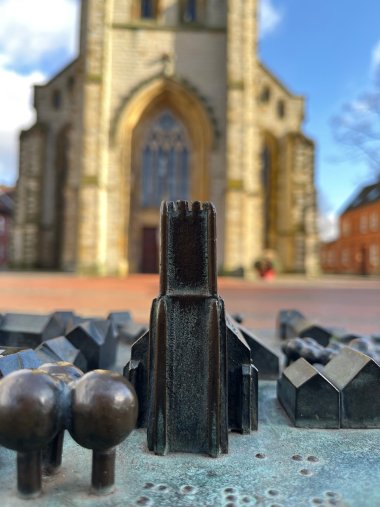Die Oelder Innenstadt liegt in Miniaturformat vor dem Betrachter. Die Zeit wird in diesem Modell "eingefroren" und festgehalten. Die Zeit scheint stillzustehen, denn Änderungen der Architektur fließen nicht ein. Somit wird das Modell mit der Zeit zum Zeitzeugen. Das Modell hat einen hohen Aufforderungscharakter, die Häuserzeilen zu berühren und zu ertasten. Leicht lässt sich an den glänzenden Stellen erkennen, wo sie am häufigsten berührt werden. Probieren Sie es selber aus und wandern im Schnelldurchgang mit den Fingern durch die Oelder Innenstadt und vergleichen Modell und Realität.