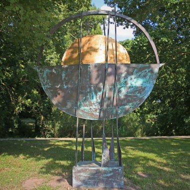 Das Sonnenboot von Basilius Kleinhans ist bezeichnend für den Künstler. Das Thema Boot und auch die Materialien Bronze und Gold ziehen sich durch sein gesamtes Werksverzeichnis. Der perfekte Standort am See lässt bei bestimmten Sonnenstand die goldene Sonne glänzen. Das Wechselspiel von Licht und Schatten, Tag und Nacht, Innen- und Außenwelt ist in diesem Werk besonders intensiv zu spüren. Getragen wird die Sonne von einem sicheren Boot - wohin sie der Weg führt, bleibt offen.