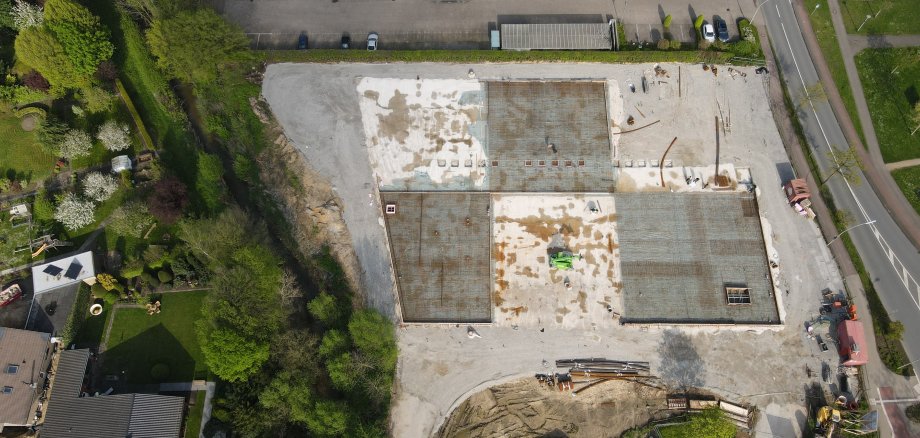 Ab Mitte Mai soll es auf der Baustelle in die Höhe gehen. Erste Stützen und Wandelemente, die dann aufgestellt werden, können einen ersten Eindruck von den zukünftigen Dimensionen der neuen Halle vermitteln.