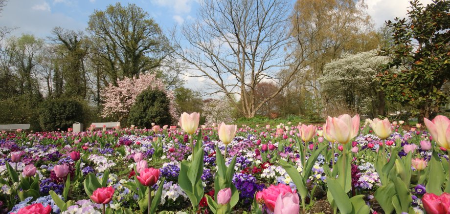 "Wir freuen uns sehr, dass wir den Vier-Jahreszeiten-Park ab Donnerstag wieder öffnen können. Der Park steht aktuell in voller Blütenpracht und lädt Besucherinnen und Besucher zu einem Frühlingsspaziergang ein. (Melanie Wiebusch, Geschäftsführerin Forum Oelde)