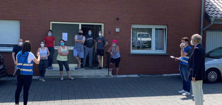 Die Stadt Oelde überprüft seit heute die Versorgungslage in den Unterkünften des Unternehmens Tönnies. Bürgermeister Karl-Friedrich Knop, Christian Griesedick von Ordnungsamt sowie Dolemtscherin Nicoleta Radoi haben dazu heute erste Einrichtungen aufgesucht.