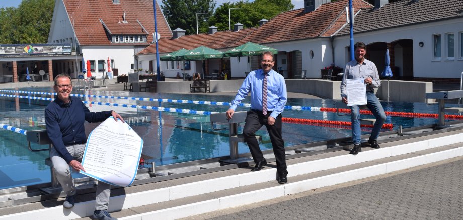 Das Bild zeigt von links Wolfgang Rettig (Forum Oelde), Michael Jathe (Geschäftsführer WBO) und Frank Hövekamp (Betriebsleiter Oelder Bäder).