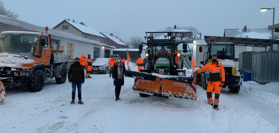 Auf dem Bild: Reinhold Becker, Leiter des Städtischen Baubetriebshofs, Bürgermeisterin Karin Rodeheger, Andreas Horstklaas