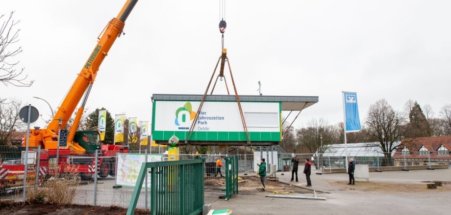 Spektakuläre Bilder bot am Freitag der Abtransport des ehemaligen Kassenhäuschens am Haupteingang des Vier-Jahreszeiten-Parks.