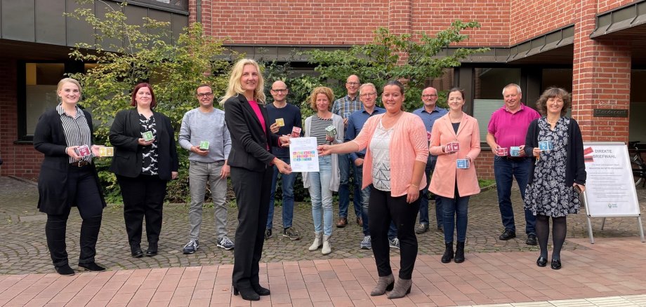 Haben an dem Workshop teilgenommen (v.l.): Dorothee Knöpper (BAUM Consult), Wiebke Mersmann (BAUM Consult), Thorsten Meer (Stadt Oelde), Bürgermeisterin Karin Rodeheger, Jörg Schröder, Stefanie Gröne, Klaus Heitmeier, Jürgen Kingma (alle Stadt Oelde), Verena Zimara (BAUM Consult), Dirk Austermann, Nadine Steinberg, Frank Siemer (alle Stadt Oelde), Heike Ewers (VHS Oelde-Ennigerloh)