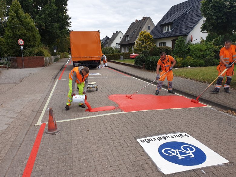 Aufgrund der Markierungsarbeiten für die Fahrradstraßen, ist es notwendig, die Straßen Zur Dicken Linde, Düdingsweg und Bultstraße teilweise oder voll für den PKW-Verkehr zu sperren.