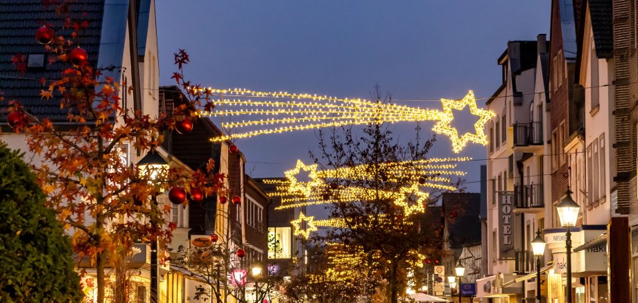Neuer weihnachtlicher Glanz in der Innenstadt: 120.000 Lichtpunkte leuchten über der Innenstadt. 30 neue Sternschweife erhellen während der Adventszeit die Einkaufsstraßen in Oelde. Die Verantwortlichen haben die neue Beleuchtung in der vergangenen Woche vorgestellt.