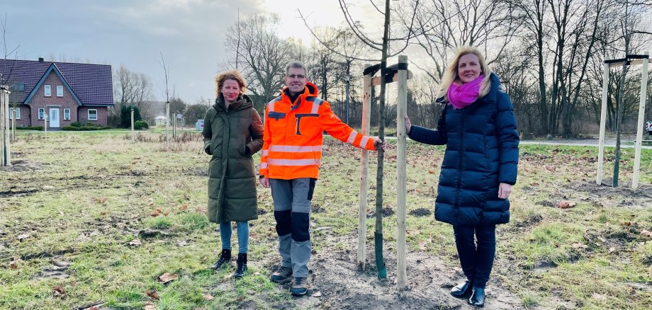 Die Mitarbeiter des städtischen Baubetriebshofs haben nun etwa dreißig unterschiedliche etwa zehnjährige Apfelbäume gepflanzt, die vom kommenden Frühjahr an für ein reges Insektentreiben sorgen und so zur Biodiversität im Viertel betragen werden. „Streuobstwiesen sind nicht nur Lebensraum für viele Tiere und Pflanzen und somit von hohem ökologischem Nutzen, sondern auch Kulturgut. Mit dieser neuen Streuobstwiese möchten wir dem Thema Aufmerksamkeit schenken und so dazu beitragen, dieses für unsere Region charakteristische Landschaftselement zu bewahren“, sagt Stefanie Gröne, Klimaschutzmanagerin der Stadt. Außerdem fügt sie hinzu: „Selbstverständlich möchten wir alle Oelderinnen und Oelder dazu einladen, sobald die Bäume Früchte tragen, sich an den Äpfeln zu bedienen.“ Rund um die Streuobstwiese wird noch ein Blühstreifen entstehen und es sind weitere Aktionen denkbar.