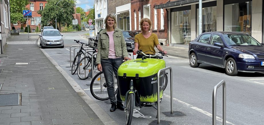 (auf dem Bild: Cordula Lüchtefeld, Fachdienst Tiefbau, und Stefanie Gröne, Klimaschutzmanagerin der Stadt Oelde)