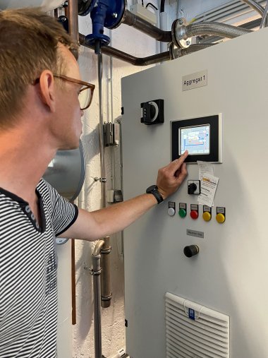 erläutert Sebastian Klose vom Team des Parkbads eine weitere Maßnahme, die Strom einspart.
