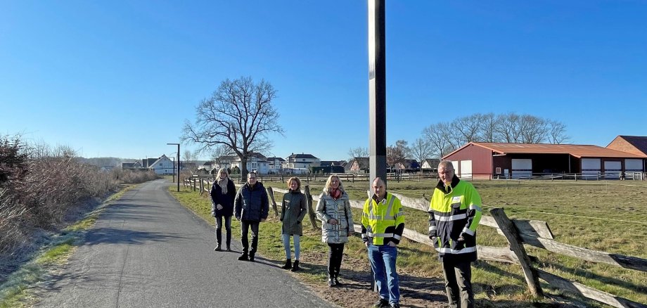auf dem Bild v.l.n.r.: Cordula Lüchtefeld (Stadt Oelde / Tiefbau), André Leson (Stadtbaurat der Stadt Oelde), Steffi Gröne (städt. Klimaschutzmanagerin), Bürgermeisterin Karin Rodeheger, André Brokamp (Stadtwerke Ostmünsterland - SO ), Rolf Berlemann (Geschäftsführung der SO)