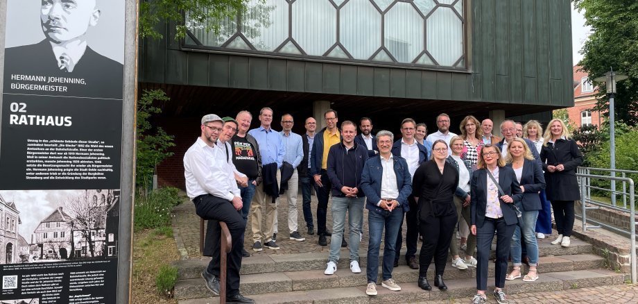(auf dem Bild: Richard Laustroer, Hendrik Becker, Markus Westbrock (FDP-Fraktion), Walter Haver, Markus Görlich (Agentur Quick & Görlich), Pfarrer André Pollmann, Markus Pfaff (Agentur Quick & Görlich), Florian Westerwalbesloh (SPD-Fraktion), Jörg Pott (Geschäftsführer Pott´s Brauerei), Francisco Rodriguez (SPD-Fraktion), Arno Zurbrüggen (FDP-Fraktion), Katharina Schwarze (Geschäftsführerin Brennerei Schwarze), Franziska Huhnke (Leitung Stadtbibliothek Oelde), Thorsten Retzlaff (FWG-Fraktion), Nicola Köstens (Stadtplanung Stadt Oelde), Birgit Deimel (Forum Oelde), Burkhard Mackel (Metall Creativ), Marianne Schultenkemper, Reinhard Börger (Förderverein Marienhospital), Heike Beckstedde (Projektleitung), André Leson (Stadtbaurat Stadt Oelde), Barbara Köß (Fraktion Bündnis 90/Grüne), Bürgermeisterin Karin Rodeheger