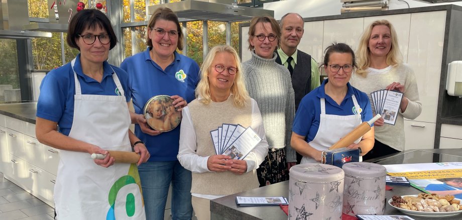 Marita Feldmann, Anne Frische (beide Gläserne Küche), Roswitha Kammermann (Fachdienst Soziales), Birgit Rumpf (Leiterin Kindermuseum), Ralf Junkerkalefeld (Edeka), Heike Schlief (Gläserne Küche) und Bürgermeisterin Karin Rodeheger freuen sich schon sehr auf die „Pottkieker“.