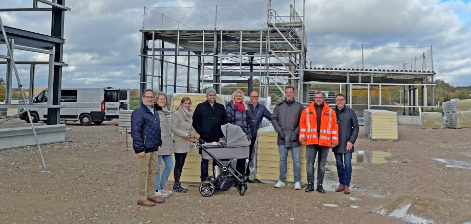 Gestern trafen Bürgermeisterin Karin Rodeheger, Stadtbaurat André Leson und Wirtschaftsförderer Volker Combrink mit den Geschäftsführern der Unternehmen und Vertretern des Bauunternehmens Baumhus zusammen und machten sich vor Ort ein Bild von den Bautätigkeiten.