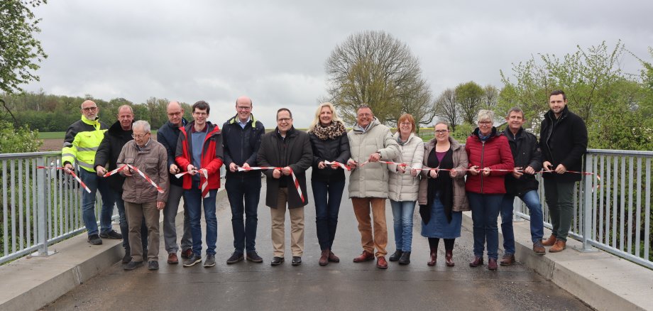 Zu einer kleinen Einweihungsfeier für die neue Brücke über den Forthbach kamen in diesen Tagen aus Wadersloh und Oelde die Vertreterinnen und Vertreter aus Rat und Verwaltung zusammen.