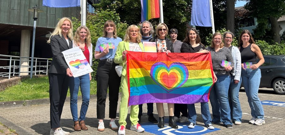 Seit dem 13. Mai weht vor dem Oelder Rathaus die Regenbogenfahne, um ein Zeichen für Toleranz zu setzen.