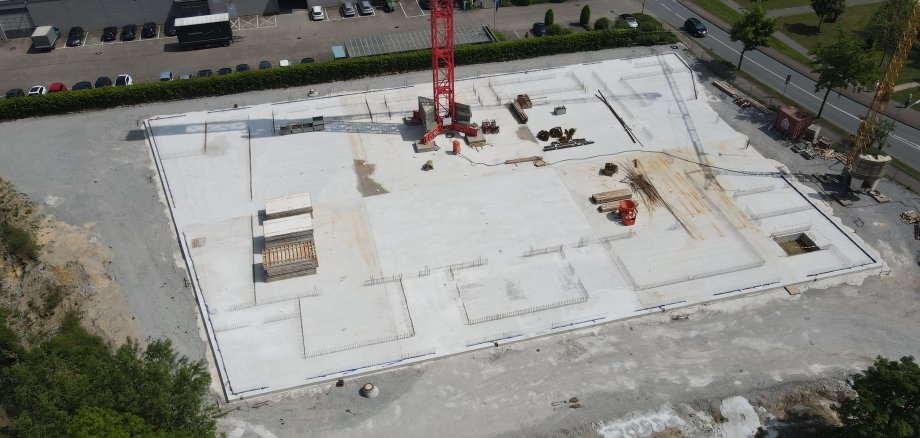 Die Bodenplatte ist vollendet, die ersten Wände stehen, die Baustelle wächst in die Höhe: Morgen findet die Grundsteinlegung auf der Baustelle der Multifunktionshalle statt.