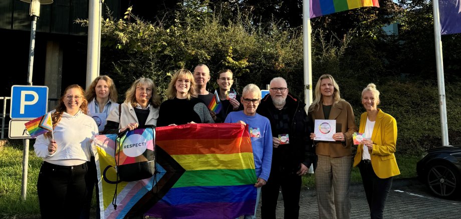 Um für Akzeptanz zu werben, wurde zum internationalen Coming Out Day am Freitag, den 11.Oktober die Regenbogenfahne vor dem Oelder Rathaus gehisst. Menschen, die sich einem anderen Geschlecht zugehörig fühlen, als dem in der Geburtsurkunde eingetragenen oder bei denen keine eindeutige Zuordnung zu männlich oder weiblich vorliegt, sowie gleichgeschlechtlich Liebende gab es schon immer. Aus Angst vor Diskriminierung ist es, insbesondere im wenig anonymen ländlicheren Raum, jedoch noch immer nicht allen Betroffenen möglich, dazu zu stehen. Die Folge ist dann oftmals Selbstverleugnung und Depression oder der Umzug in eine Großstadt. So sein und leben zu dürfen, wie man sich fühlt und dabei in seinem sozialen Netz bleiben zu können, sollte eine Selbstverständlichkeit sein. Die Landesfachstelle blick* setzt sich mit der RESPECT!‐Kampagne dafür ein, dass Betroffene Zugang zu Beratung, Vernetzung und Unterstützung finden können. Die Stadt Oelde beteiligt sich an der für 2025 geplanten Umsetzung in der hiesigen Region.