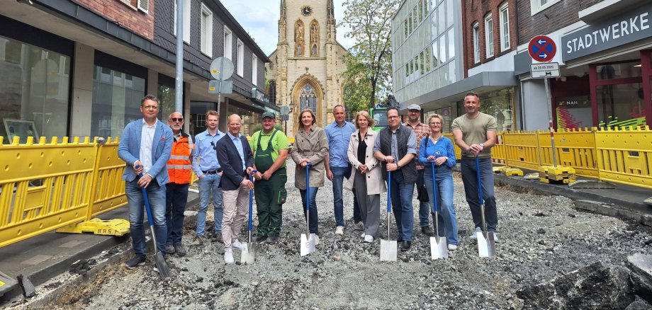 Mit dem symbolischen Spatenstich fiel gestern der Startschuss für die umfassende Neugestaltung der Herrenstraße. Die zentrale Verbindung zwischen Marktplatz und Ennigerloher Straße wird künftig als attraktive Fußgängerzone gestaltet – und damit zum modernen Eingangstor in die Oelder Innenstadt. Das Projekt ist Teil des „Masterplans Innenstadt“ und stellt einen wichtigen Schritt für die Stadtentwicklung dar.