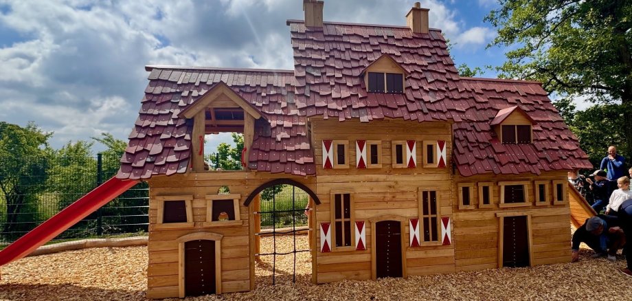Mit großer Begeisterung haben zahlreiche Kinder das neue Mini-Burgdorf im Stromberger Freibad in Besitz genommen. Kaum hatte Bürgermeisterin Karin Rodeheger das Eröffnungsband durchschnitten, war der Spielbereich dicht umlagert.