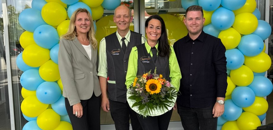 Zur Eröffnung gratulierten Bürgermeisterin Karin Rodeheger und Leonard Gromes von der Wirtschaftsförderung der Stadt Oelde.