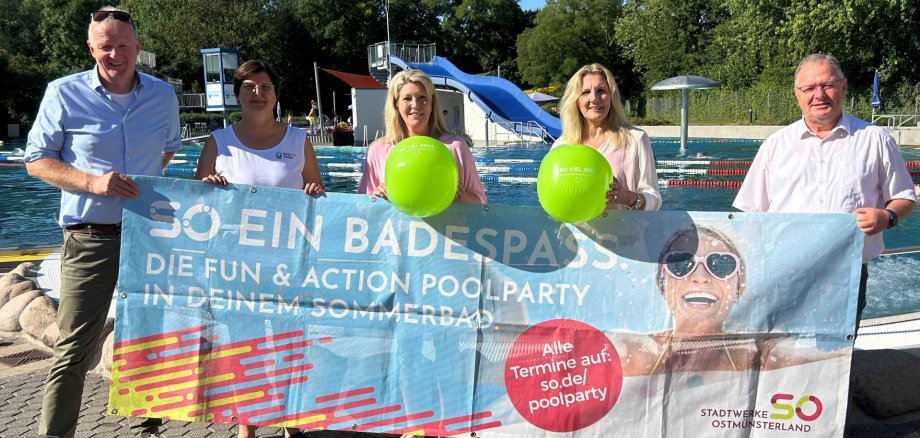Die Stadtwerke Ostmünsterland laden in Kooperation mit dem Parkbad im Vier-Jahreszeiten-Park nun zum dritten Mal zur beliebten Bädertour unter dem Motto „SO geht Sommer“ ein und bringen am Montag, 11. August 2025 eine unvergessliche Poolparty ins Parkbad. Von 13.00 - 18.00 Uhr erwartet die Besucher*innen ein buntes Programm voller Spaß und Unterhaltung für Groß und Klein.
