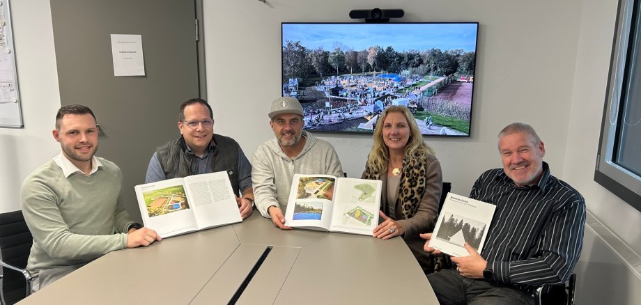 Zu diesem Anlass sicherte sich Ingo Naschhold, Geschäftsführer des beauftragten Planungsbüros DSGN Concepts aus Münster, einige Exemplare und überreichte diese Bürgermeisterin Karin Rodeheger, André Leson (Stadtbaurat), Oliver Smeenk (Leiter Baubetriebshof) sowie Albert Reen (Projektverantwortlicher).