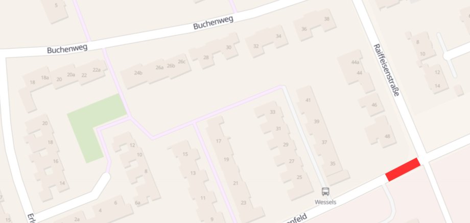 Die Umleitung erfolgt über die Raiffeisenstraße, den Buchenweg und den Erlenweg.