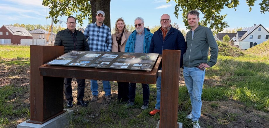 Unter der alten Eiche im Baugebiet Weitkamp II steht jetzt eine Infotafel, die über die archäologischen Funde in dem Gebiet informiert. Denn bevor die neuen Baufelder Weitkamp I und II eingerichtet wurden, wurde festgestellt, dass die Siedlungsgeschichte vor Ort bis in die Steinzeit, d.h. bis zu 9000 Jahre vor Christus zurück reicht und sich durch die Jahrtausende fortgesetzt hat. Dies belegen tausende von Funden aus unterschiedlichen Epochen. Über diese informiert nun die Tafel, die in Zusammenarbeit zwischen der Stadt Oelde und dem Landschaftsverband Westfalen Lippe (LWL) inhaltlich erarbeitet und handwerklich von Burkhard Mackel umgesetzt wurde.