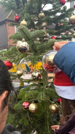 Am 05.12.2025 stand der Wochenmarkt unter dem Motto "Nikolaus". Alle Markthändler*innen trugen Weihnachtsmützen, Kinder aus verschiedenen Schulen und Kindergärten haben die Tannenbäume geschmückt und haben anschließend Schokolade, Mandarinen & Co vom "echten" Nikolaus erhalten.